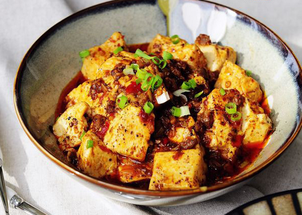 南豆腐500克 牛肉100克 郫县豆瓣酱5克 辣椒粉3克 花椒5克 小葱5克 姜5克蒜5克 白糖3克 酱油5克 料酒5克 植物油适量 食盐少许